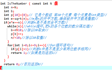 数据表达:用了4个整型变量N,n,b,i.N代表用户输入的值.n等于N的值,b为N的各个位数的数字,i为位数中相同的数字