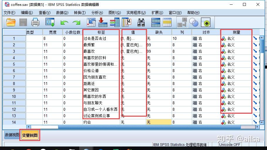 SPSS中的数据由两部分组成,数据视图和变量视图,数据视图用来存储数据,类似于数据库中的表,变量视图用来定义变量的一些属性,类似于数据库中的表字段的设置