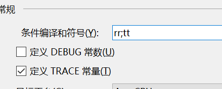 <PropertyGroup Condition="'$(Configuration)|$(Platform)'=='Debug|AnyCPU'"> <DefineConstants>TRACE;rr;tt</DefineConstants> </PropertyGroup>