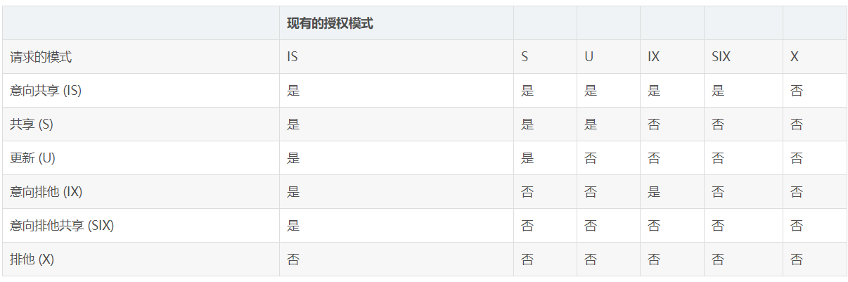 这些锁之间的相互兼容性,也就是,是否可以同时存在。