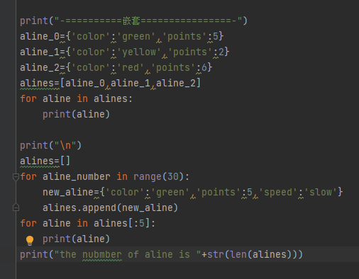 有时候,需要将一系列字典存储在列表中,或将列表作为值存储在字典中,这称为嵌套 。你可以在列表中嵌套字典、在字典中嵌套列表甚至在字典中嵌套字典