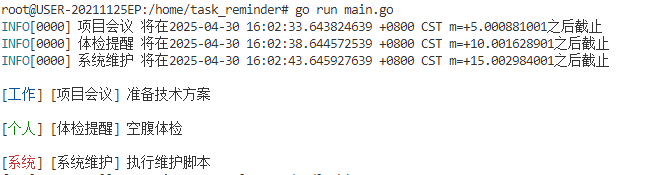 编写定时提醒程序时,熟悉了时间逻辑处理和多定时器管理;集成邮件服务(Go 写 SMTP)时,体会到网络编程中错误处理和稳定性保障的挑战。