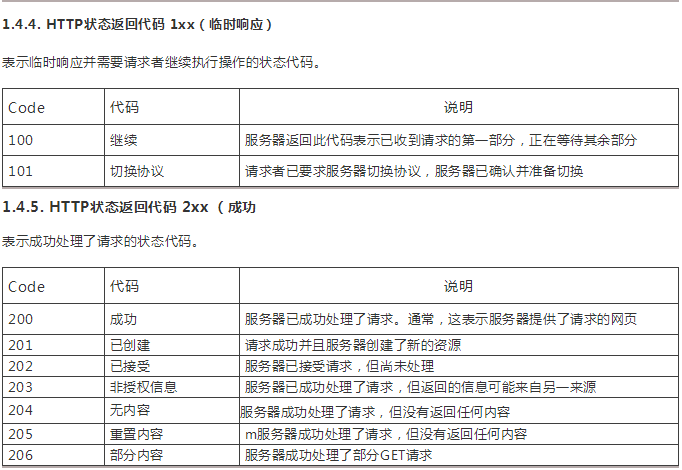 1.4.4. HTTP状态返回代码 1xx(临时响应)