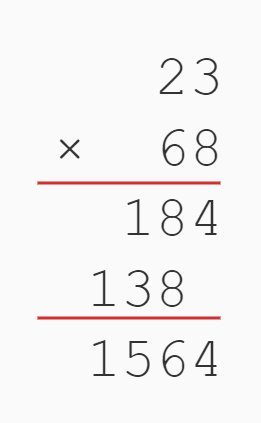 #include <bits/stdc++.h> #define N 110 using namespace std; int a_digits[N] = {3, 2}, a_len = 2; int b_digits[N] = {8, 6}, b_len = 2; // int a_digits[N] = {0}, a_len = 1; // int b_digits[N] = {9, 9}, b_len = 2; int ans_digits[N * 2], ans_len; int main() { // 1. 数位操作 // 考虑到(a位数×b位数)最多得到(a + b)位数,所以我们设置答案初始长度为a + b。 // 另外考虑到第i位×第j位会贡献到(i + j)位,所以,我们用累加的方式计算答案的每一位。 // 值得注意的是,这里累加的结果可能>=10,所以按理说应该进位,但为了效率考虑,我们 // 在后面统一维护进位,而不是一边加一边进。 ans_len = a_len + b_len; // 初始化长度 for (int i = 0; i < ans_len; ++i) ans_digits[i] = 0; // 因为是不断累加的形式,所以要将范围内的元素初始化为0。 for (int i = 0; i < a_len; ++i) for (int j = 0; j < b_len; ++j) ans_digits[i + j] += a_digits[i] * b_digits[j]; // ans的每一位更新都要使用累加的形式,这是因为对于ans的第k位,满足i + j == k的(i, j)很多,所以可能答案的第k位可能先后被更新很多次。 // 2. 统一进位 // 上一步提到,因为累加后得到的答案各个数位有可能>=10,所以要将其变成一个合法的高精度形式 // 也就是说,要把>=10的部分进位到下一位。所以我们用类似于高精度加法的方法维护。 // 每一位只需要将自己的值和低位的进位相加,然后把>=10的部分作为新的进位进到下一位。 int k = 0; for (int i = 0; i < ans_len; ++i) { ans_digits[i] += k; k = ans_digits[i] / 10; ans_digits[i] %= 10; } // 3. 维护长度 // 上面提到,(a位数×b位数)最多得到(a + b)位数 // 但考虑一个非零整数和0相乘的情况,答案的长度很可能降为1。所以我们需要向减法一样更新长度。 // 只有当长度仍然>1的时候,才需要去掉前导0 while (ans_len > 1 && ans_digits[ans_len - 1] == 0) --ans_len; // 4. 输出 for (int i = ans_len - 1; i >= 0; --i) cout << ans_digits[i]; cout << endl; return 0; }
