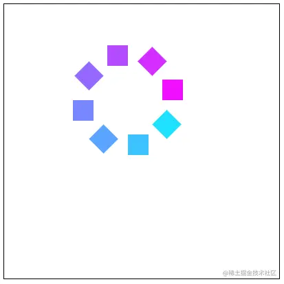 这里利用rotate()方法配合保存和恢复方法实现形状的变换。