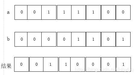比较两个数,然后返回一个数,这个数的每个位设为1的条件是两个输入数的同一位不同,如果相同就设为0,如下图: