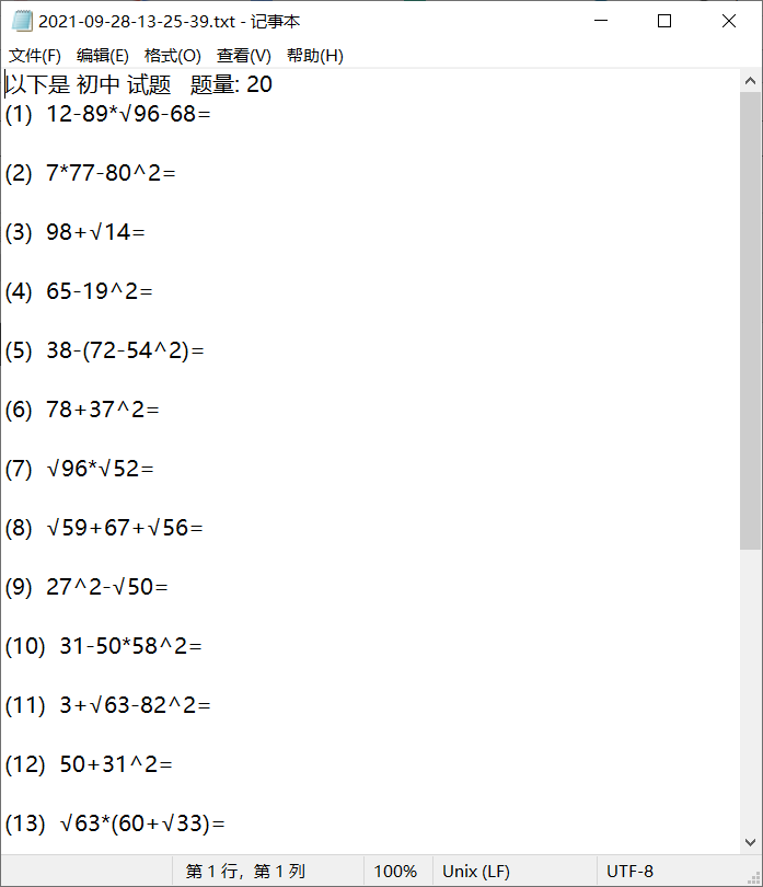 题目全都生成在txt文件内