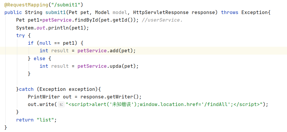 因此后端有pet实体类对象,前端恰好也是pet对象获取数据,那么会等价调用。