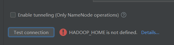 在自己的win电脑想连机房的hadoop开发,发现idea已经有个官方的插件可以连hadoop和hdfs之类的了,打算试试,但输入端口和用户名后连接失败报如下错误❗HADOOP_HOME is not defined: