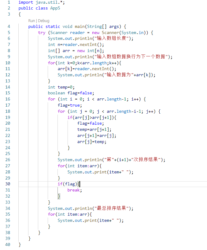 课堂上老师讲了一段冒泡排序的例子,因为没有用flag进行优化,所以课下做了些改动,同时记录心得