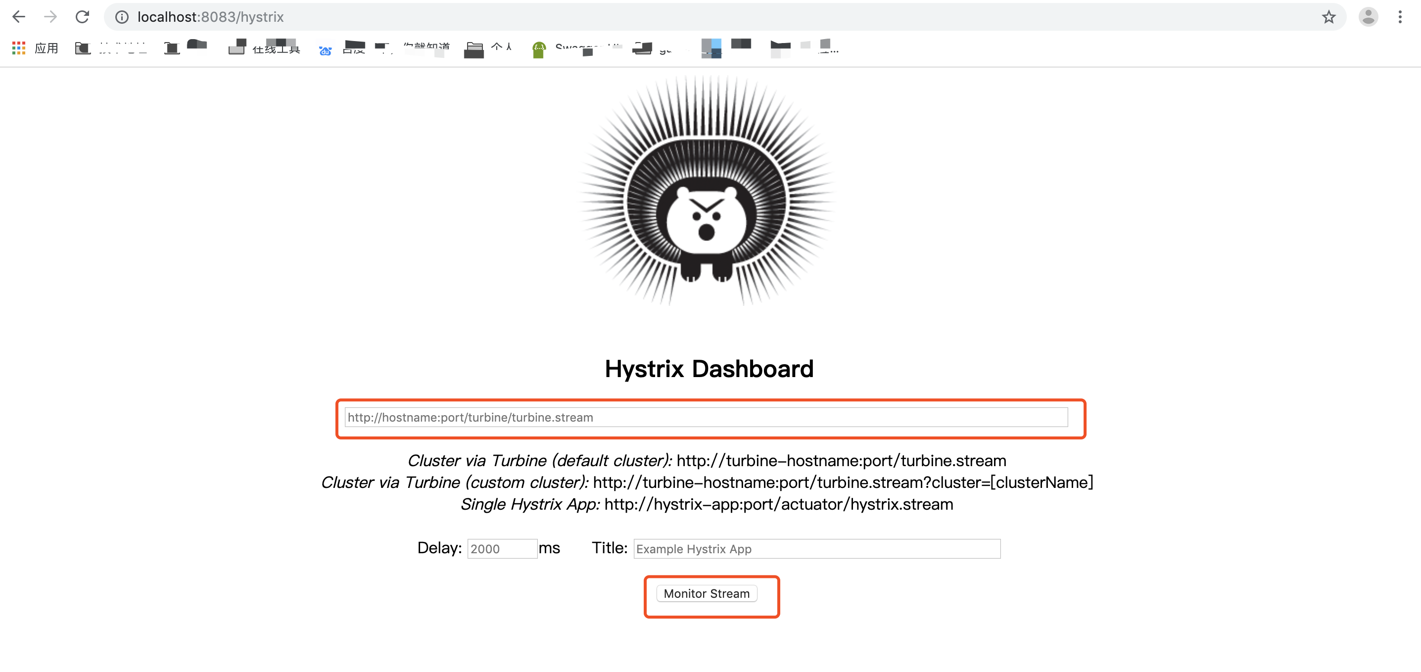 紧接着输入ip:port/hystrix,打开如下图所示的界面