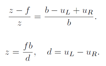 这里补充下双目相机的视差估计原理(下图截自SLAM十四讲):