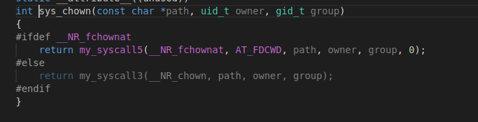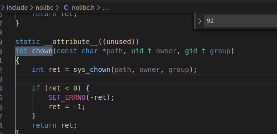 接着如下图在./linux-5.4.34/tools/include/nolibc/nolibc.h中找到了chown的实现