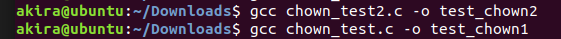 Test_chown2 用来将所有者和组变为1000 1000, 即 akira akira;