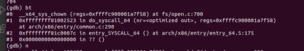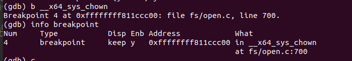 设置断点 __x64_sys_chown(chown对应的entry_point)