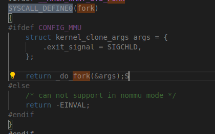 - 内核根据系统调用号,调用 sys_fork 系统调用,而 sys_fork 系统调用则是通过 clone 系统调用实现的,会调用 clone 系统调用;