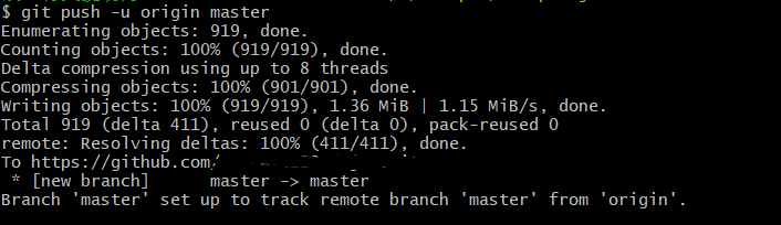 git push -u origin master 将代码上传到github上