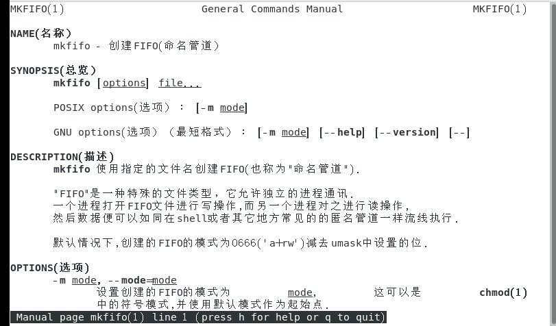 #include <unistd.h>#include <sys/types.h>#include <sys/stat.h> #include <fcntl.h> #include <stdio.h> int main() { char buf[64]; int n = 0; int fd = open("hello", O_WRONLY); if (fd < 0) { perror("open fifo"); return -1; } puts("has opend fifo"); while((n = read(STDIN_FILENO, buf, 64)) > 0) { write(fd, buf, n); if (buf[0] == 'q') break; } close(fd); return 0; }// pipe_recv.c