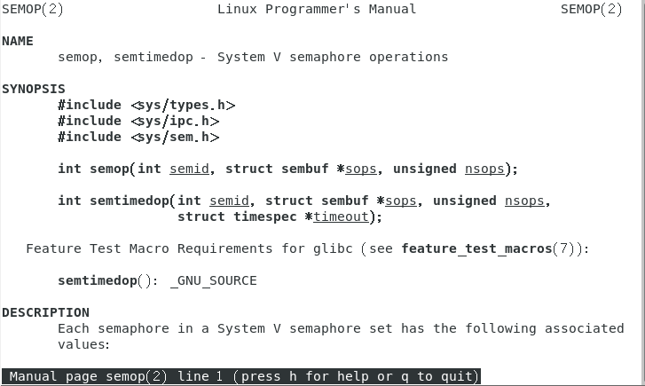 #include <sys/ipc.h> #include <sys/shm.h> #include <sys/msg.h> #include <sys/sem.h> #include <stdio.h>#include <stdlib.h> #include <string.h> int main(int argc, char* argv[]) { if (argc < 3) { printf("%s <ipc type> <key>\n", argv[0]); return -1; } key_t key = strtoll(argv[2], NULL, 16); char type = argv[1][0]; char buf[64]; int id; if (type == '0') { id = shmget(key, 0, 0); strcpy(buf, "share memory"); } else if (type == '1') { id = msgget(key, 0); strcpy(buf, "message queue"); } else if (type == '2') { id = semget(key, 0, 0); strcpy(buf, "semaphore"); } else { printf("type must be 0, 1, or 2\n"); return -1; } if (id < 0) { perror("get error"); return -1; } printf("get %s at 0x%x, id = %d\n", buf, key, id); return 0; }