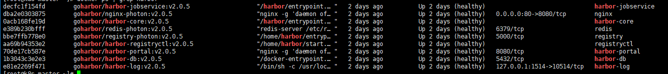#进入harbor 所在的目录 #启动 harbor,生成容器。 docker-compose up -d #停止 harbor,移除容器 docker-compose down #启动服务 docker-compose start #停止服务 docker-compose stop #重启服务 docker-compose restart #列出容器正在使用的镜像 docker-compose images