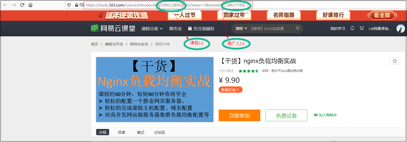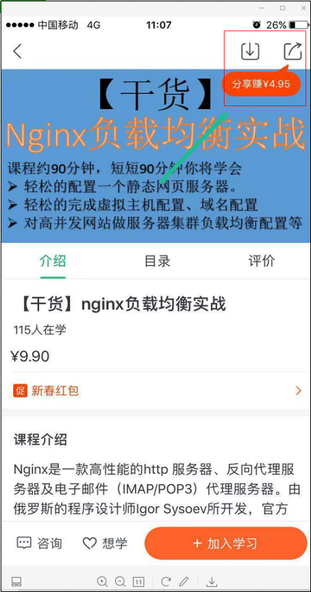 这里假设以点击<<【干货】nginx负载均衡实战>>课程为例