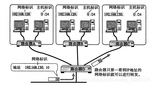 路由器负责连接不同的子网络,其利用的就是IP地址的网络地址部分进行路由。