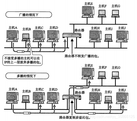 在 电视会议系统中比较多用。 在多播之前,人们一直采用广播的方式,那时,广播数据将会发送给所有的终端计算机,然后再由这些计算机的IP之上的层去判断是否有必要接受数据,不需要就丢弃,这回造成网络上存在很多不必要的流量。 况且,路由器一般会被设置为不允许多播数据穿透,因此IP多播被采用了。