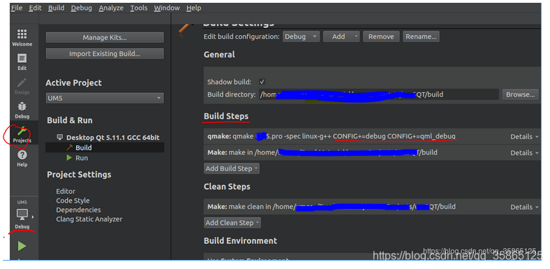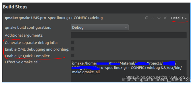 点击Build steps中的details进行详细设置,勾选Enable QML debugging and profiling: