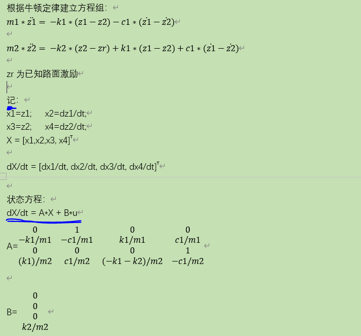 实际应用:2自由度1/4车辆悬架垂向振动模型;