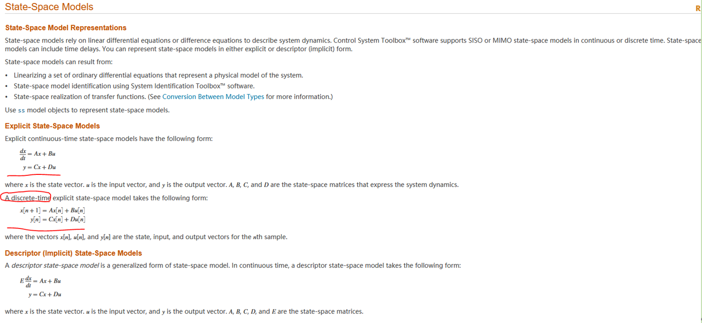 State-Space Models: https://ww2.mathworks.cn/help/control/ug/state-space-models.html
