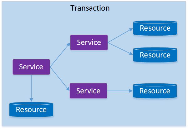 - 分布式事务:当一个服务操作访问不同的数据库资源,又希望对它们的访问具有事务特性时,就要采用分布式事务来协调所有的事务参与者。