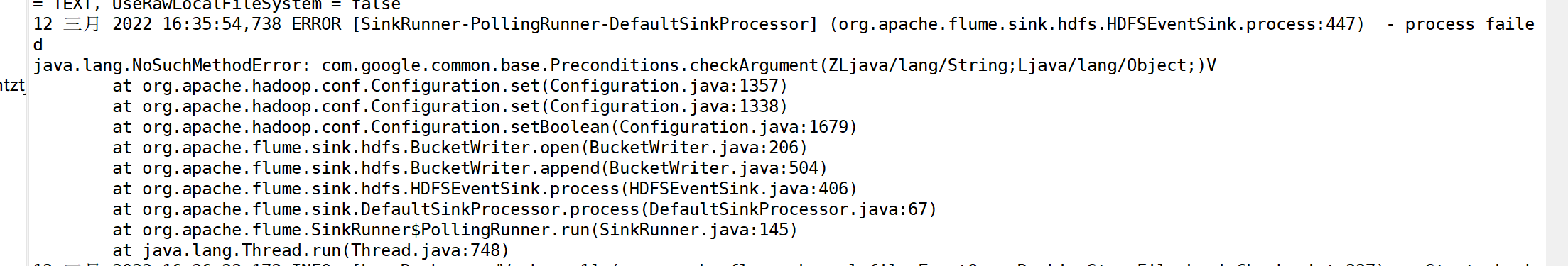 ERROR [SinkRunner-PollingRunner-DefaultSinkProcessor] (org.apache.flume.sink.hdfs.HDFSEventSink.process:447) - process failed