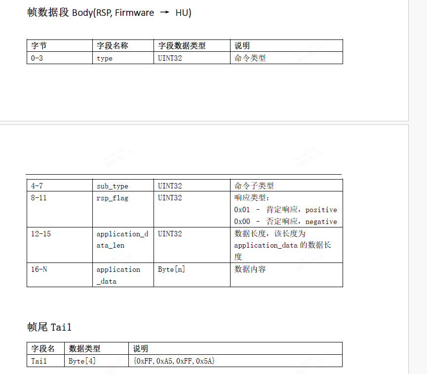 车机(HU)与其他Firmware(Firmware)通信的数据帧结构