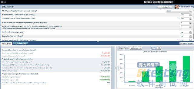 如果觉得自己做一个ROI模型很麻烦,也有捷径可走。 推荐一个线上的计算自动化测试ROI地址:https://www-01.ibm.com/software/rational/offerings/testing/roi/tool/ROI_Rational.html