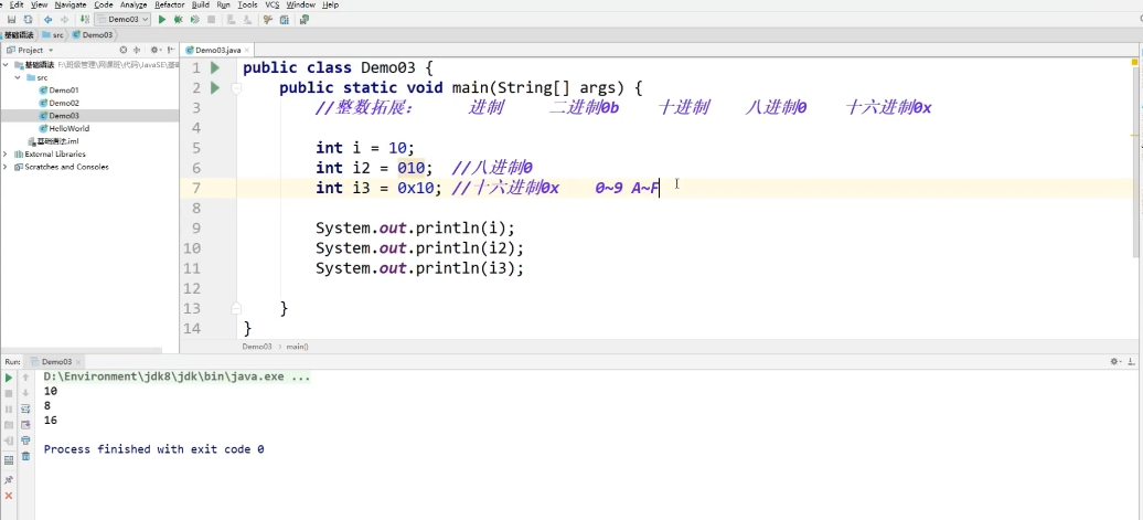 整数拓展 进制 二进制0b 十进制 八进制0 十六进制0x