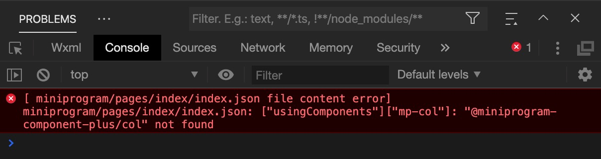使用小程序扩展组件 grid 时,按文档操作完后,运行报错 "@miniprogram-component-plus/col" not found,如下图所示