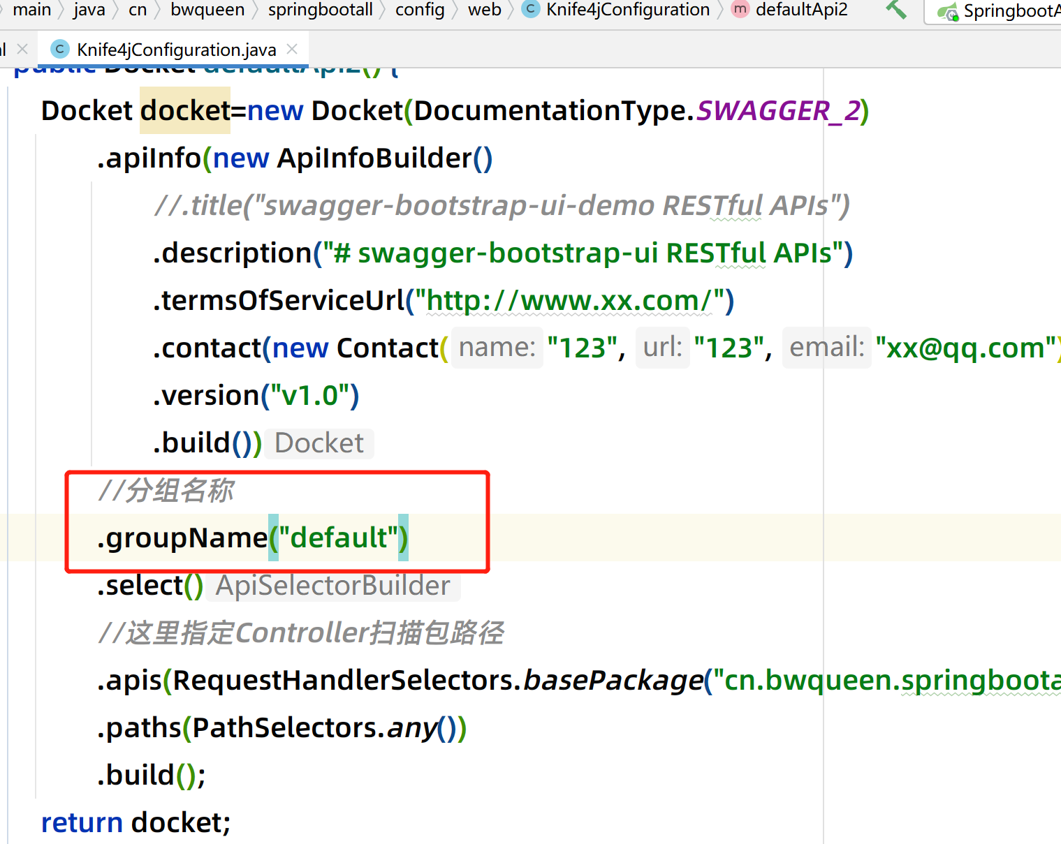 Swagger2ControllerWebMvc:Unable to find specification for group 1.0
