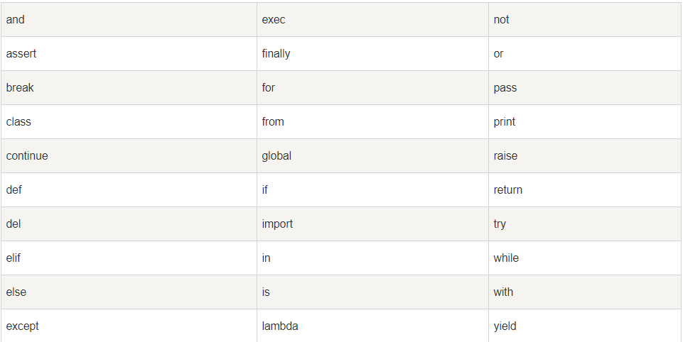 所有 Python 的关键字只包含小写字母。