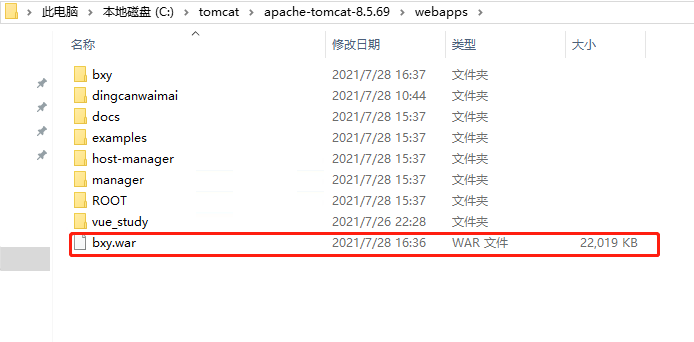 打包完成后会多出target目录 将里面打包好的war上传到tomcat-webapps目录内