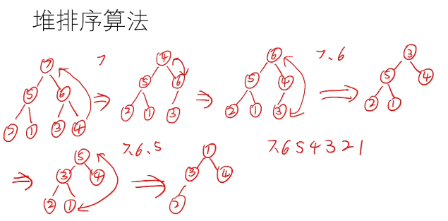 上面就是堆排序算法,不断将根节点(最大值,所以结果是降序的)pop出来后用最后一位节点填上,然后继续计算最大堆。如此反复,直到存储堆列表的长度为1。