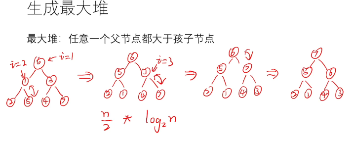 最大堆的生成就是不断地将数值较大的子节点替换到父节点,直到满足最大堆的定义