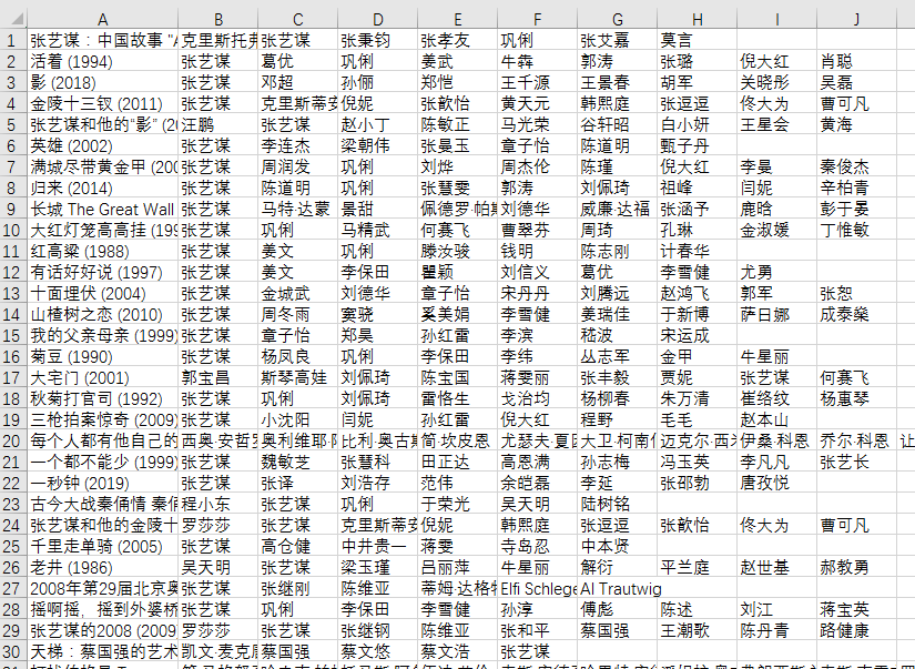 这是爬下来的数据,主要是用到演员名那些列。