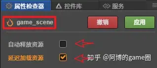 静态资源的内存管理:静态资源指的是场景中直接或间接引用到的所有资源(脚本动态加载的资源不算在内)。在场景资源的属性编辑器中可以勾选“自动释放资源”选项,从而在切换场景时,会自动将旧场景使用的静态资源释放掉,从而节省内存的占用。