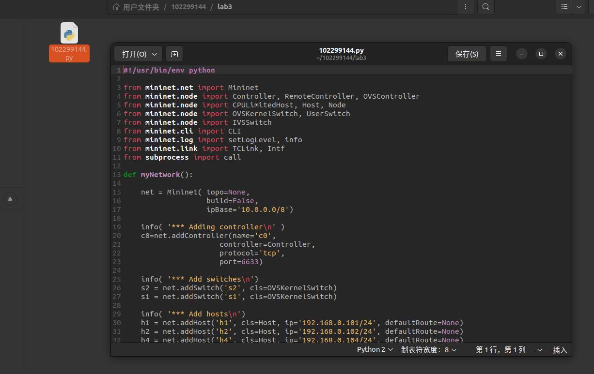 (一)导入到/home/用户名/学号/lab3/目录下的拓扑文件