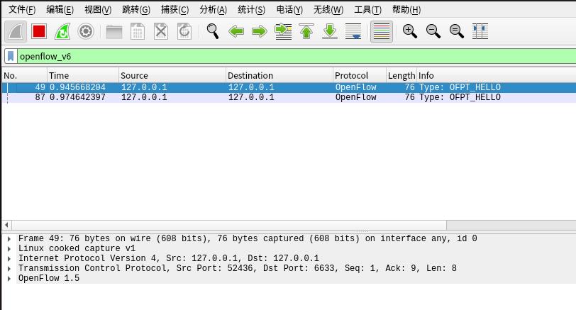 交换机52436端口(OpenFlow 1.5) ---> 控制器6633端口