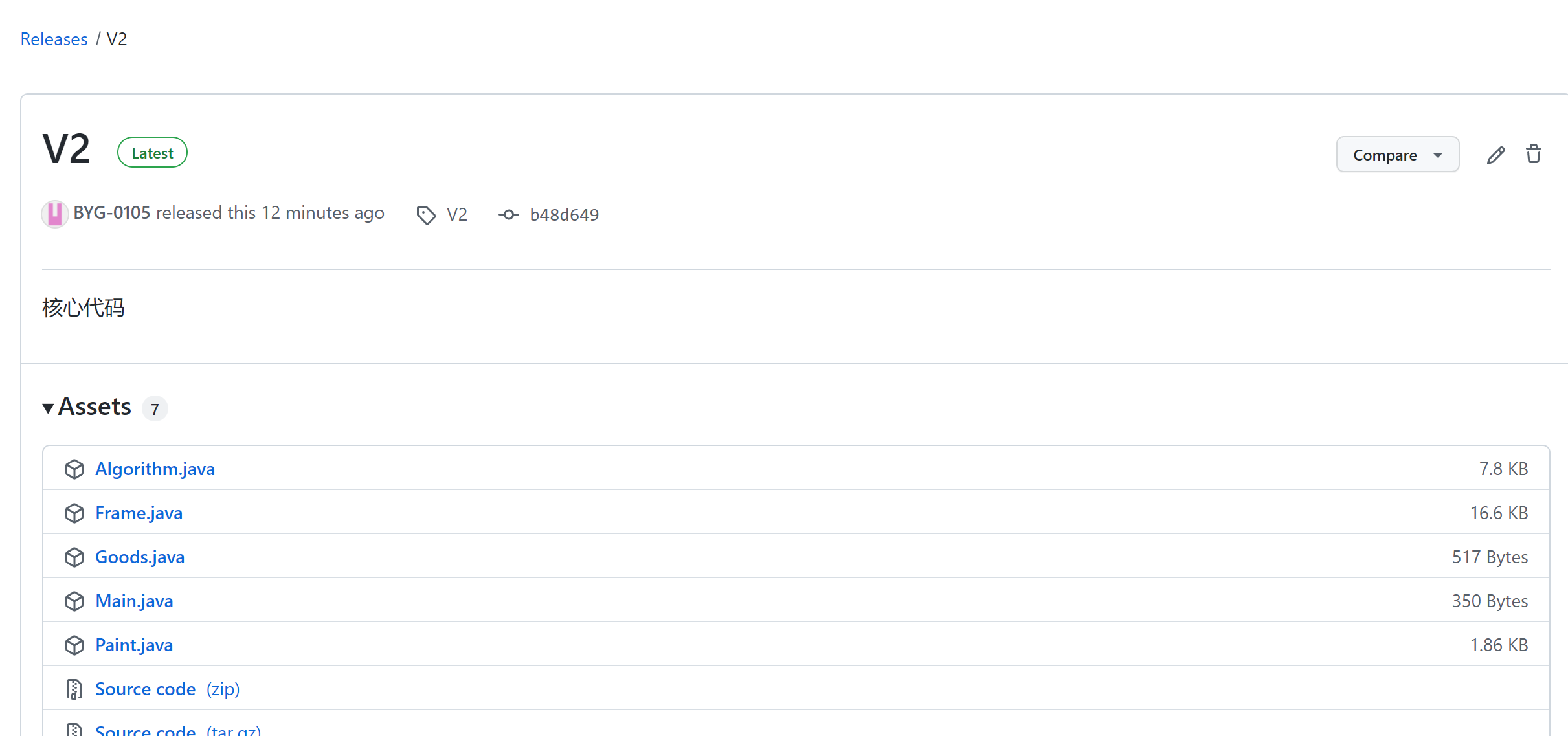github使用 :使用release一次,发布了一个版本,如下图所示:
