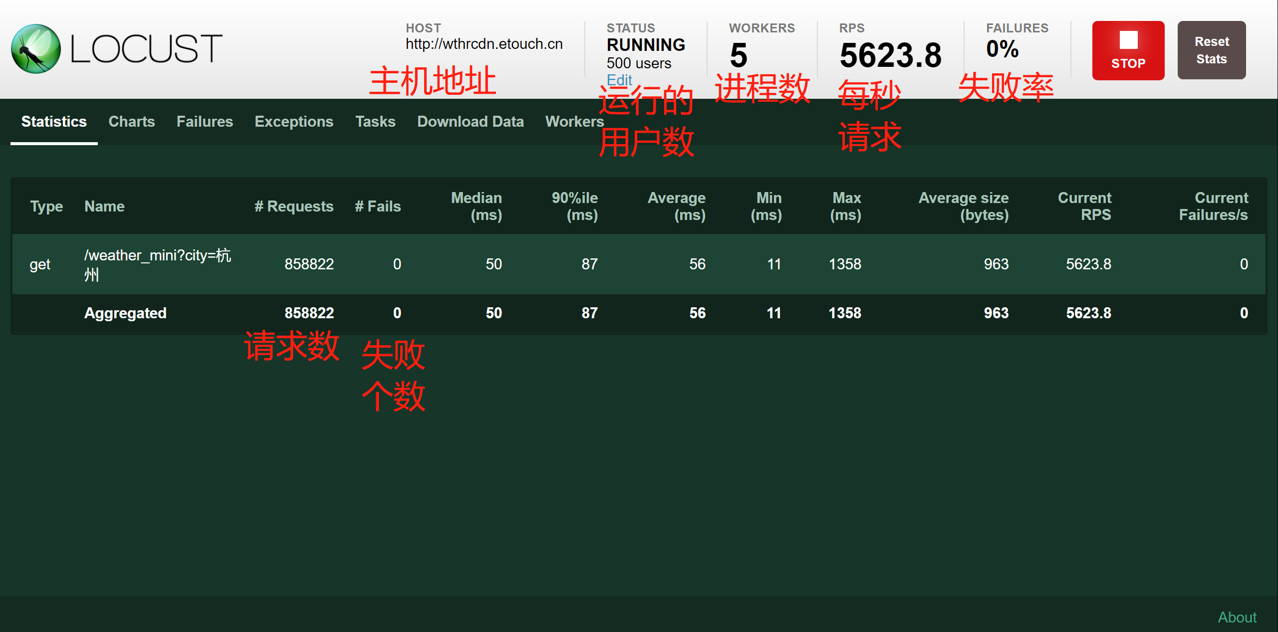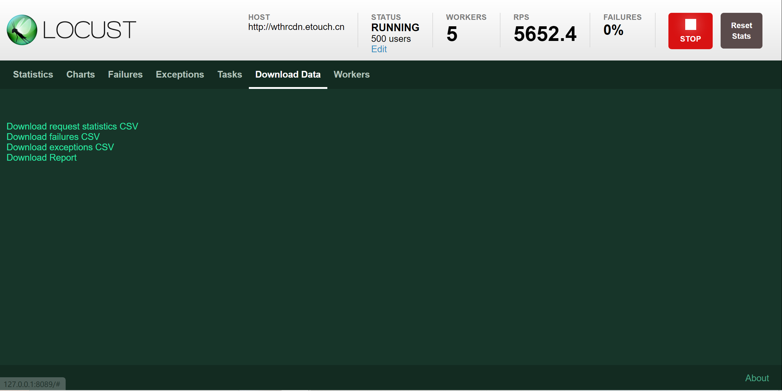 locust 提供了友好的web界面用于监控性能测试过程中的相关数据