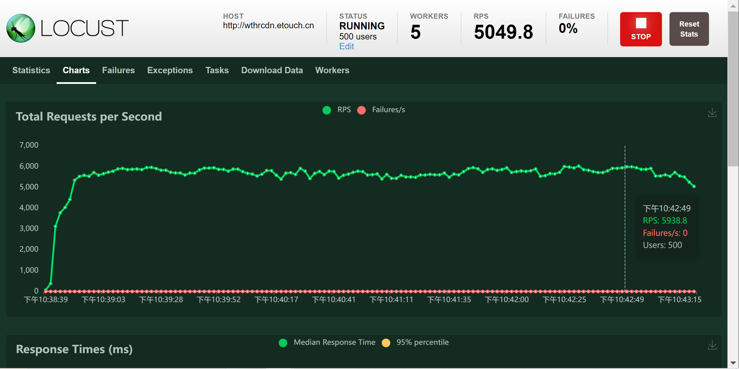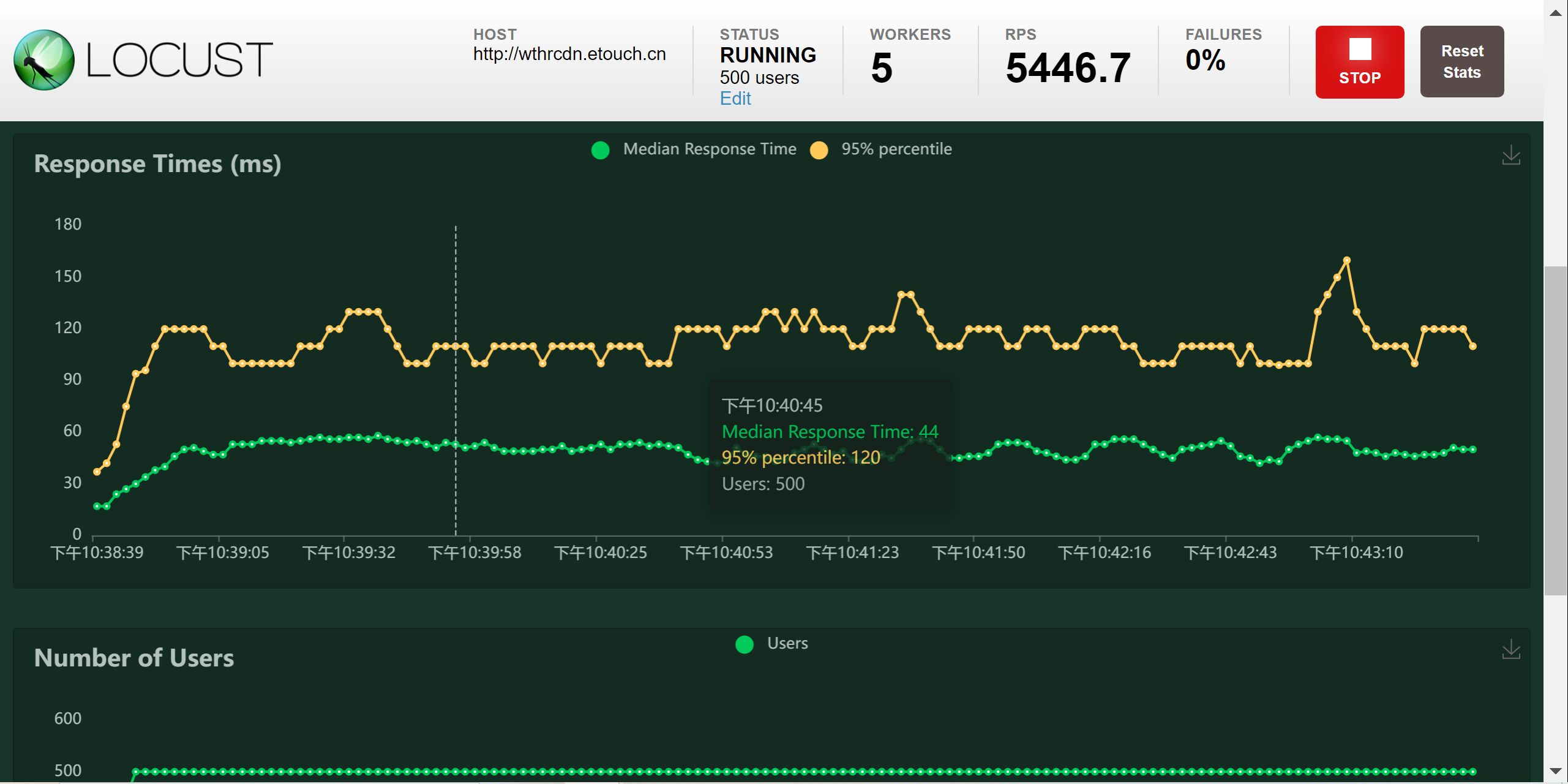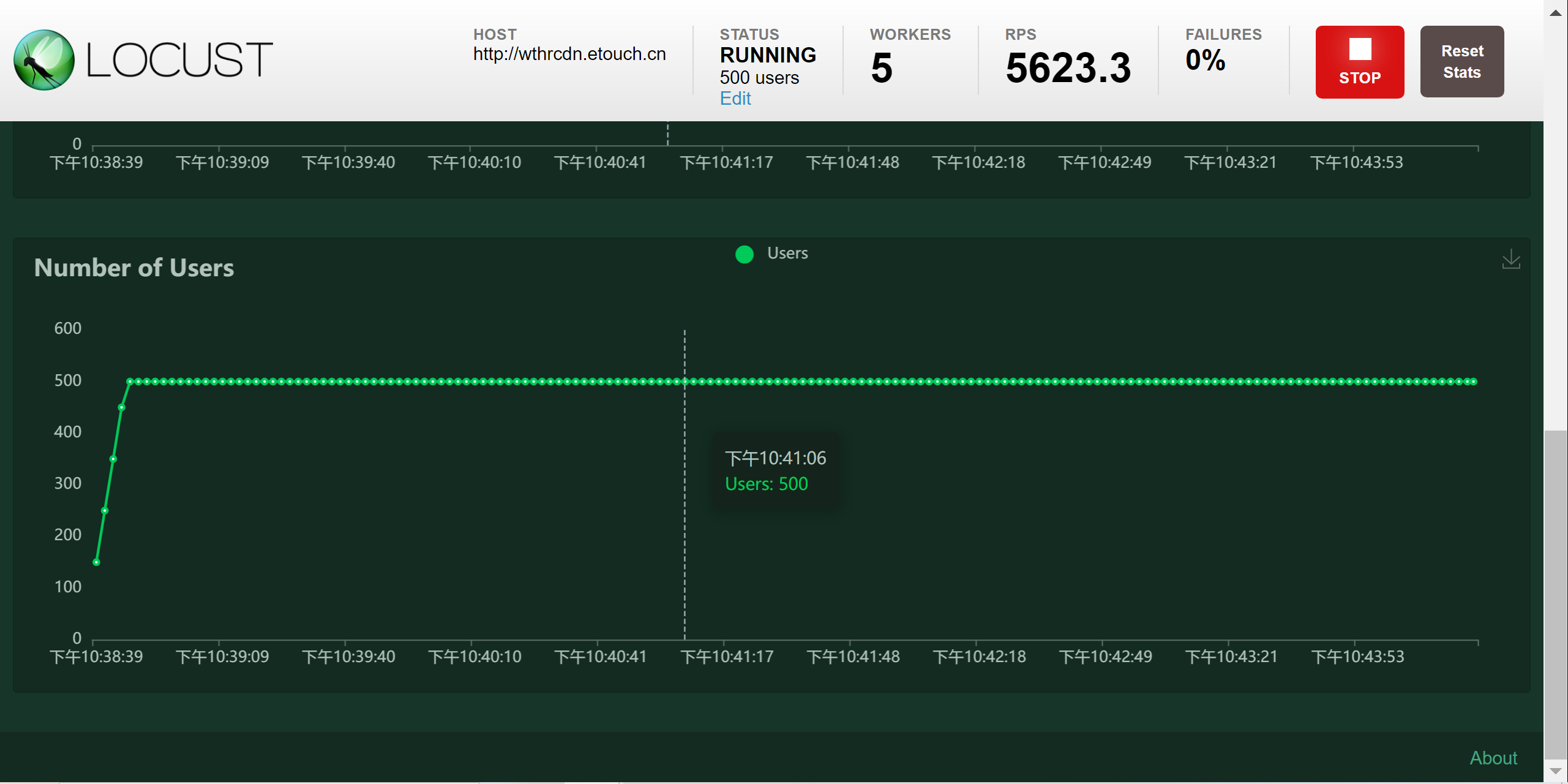 正因为如此,Locust 还附带FastHttpUser使用geventhttpclient代替。它提供了一个非常相似的 API,并且使用的 CPU 时间显着减少,通常情况下将给定硬件上每秒的最大请求数增加了 5 到 6 倍。