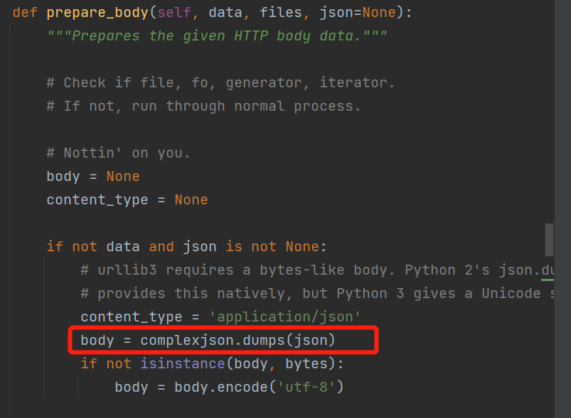 import requests,json url = 'http://httpbin.org/post' data = {'some': 'data'} r1 = requests.post(url, data=data) r2 = requests.post(url,data=json.dumps(data)) r3 = requests.post(url,json=data) r4 = requests.post(url=url,json=json.dumps(data)) # data 传入dict # 查看输出 Content-Type:application/x-www-form-urlencoded # 即键值对的形式: # 类似some=data&xxx=xxx 的形式 print(r1.request.headers)