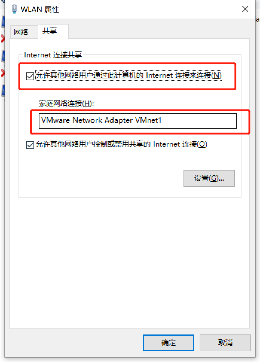 这里我们要设置一下,允许我们的主机共享网络给虚拟机(在window上此操作)